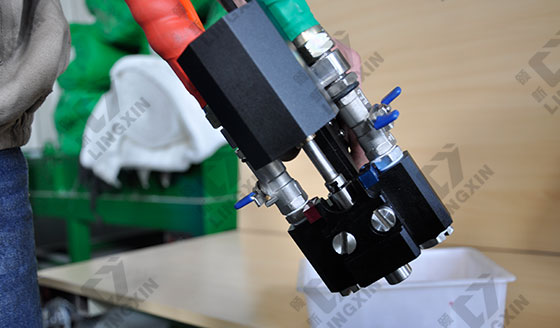 噴槍:主要起到混合原料、開關原料噴吐和控制流量大小的作用。我公司噴槍內附有加熱裝置,減少原料因為流經過噴槍溫度降低而引起的發泡不良等現象。同時通過槍頭特有的節流增壓裝置,使原料混合更為均勻,打料更為準確。